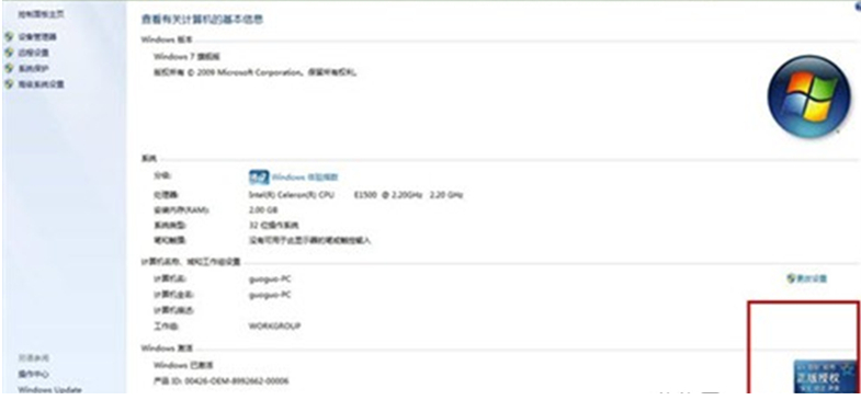 4、Win7系统成功通过验证后,打开计算机的属性就可以看到“正版授权”图标了,即Win7系统已经成功激活了解。