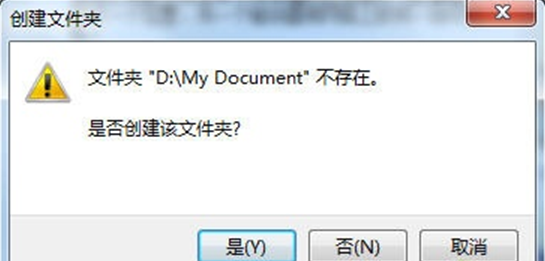 4、如果新设置的文件夹还没有创建,系统会弹出对话框提示用户,选择“是”。