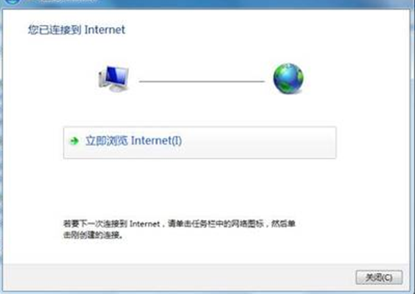4、等待片刻即可看到“立即浏览 Internet”,这时WIN7宽带连接已经创建成功了。
