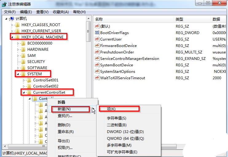 2、在打开的注册表编辑器中依次展开以下注册项:HKEY_LOCAL_MACHINE\SYSTEM\CurrentControlSet\Control