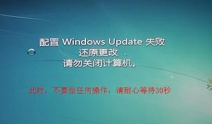 2、大约30秒后,系统会出现 “配置Windows Update失败,还原更改,请勿关闭计算机”的提示,此时不要做任何操作,请耐心等待。