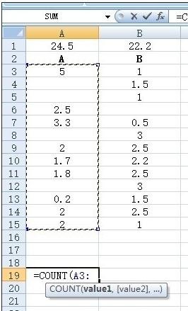 统计个数函数使用步骤2:在你想得到统计结果的单元格里输入公式"=COUNT()",括号里填写的是需要统计数据的单元格区域,将输入光标停留在括号里,就可以直接通过鼠标划选区域。