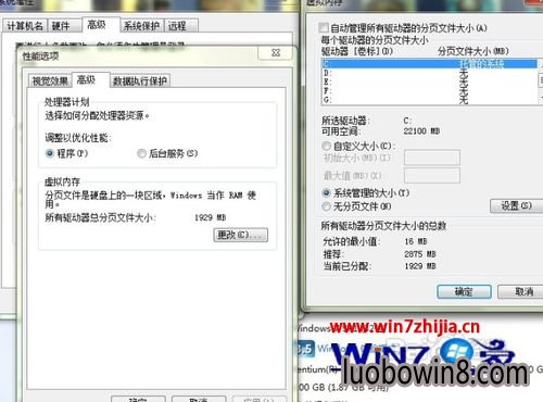 1、计算机->右键属性-》高级设置-》高级-》性能-设置-》高级选项卡-》虚拟内存-修改-》选一个盘,如C盘,点下面为管理的大小>>设置。。。确定即可。