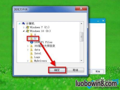 8、在点击的文件选中框中,找到并选中刚才保存两个文件的那个文件夹,点“确定”;