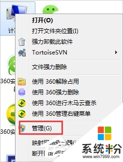1、在桌面右键点击“我的电脑”,弹出下拉菜单,选择“管理”,如图: