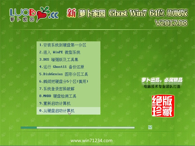 新萝卜家园WIN7x64位装机版系统仅用于进行演示基于万能GHOST的快速部署技术,供装机维护技术人员参考,我们不承担任何技术及版权问题,且不对任何资源负法律责任。所有资源请在下载后24小时内删除。如果您觉得满意,请购买正版!!!